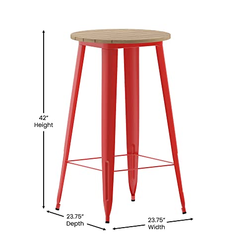 Flash Furniture Declan Commercial Indoor/Outdoor Bar Table, 23.75" Round All Weather Poly Resin Top with Steel Base, Brown/Silver