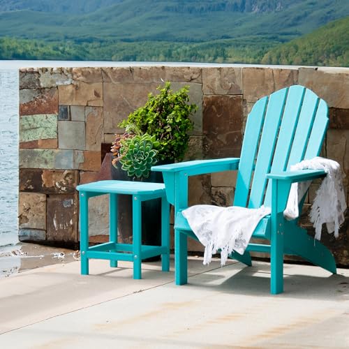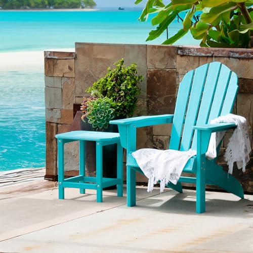 RESINTEAK Outdoor Side Table, All Weather Resistant, HDPE Recyclable Plastic, Premium Quality, Outdoor Patio End Tables (Aqua, Non-Folding)