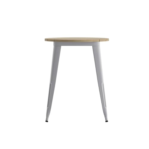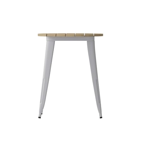 Merrick Lane Dryden Outdoor Dining Table, All Weather Poly Resin Top with Steel Base, 23.75" Round, Brown/Silver