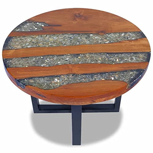 Sofa Table, Simple Design Coffee Table, Small Coffee Table, Coffee Table for Living Room, Bedroom, Reception Room, Teak Resin 23.6"