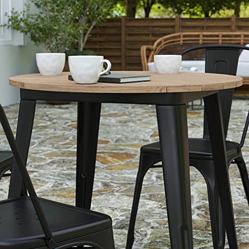 Merrick Lane Dryden Outdoor Dining Table, All Weather Poly Resin Top with Steel Base, 30" Round, Black/Black
