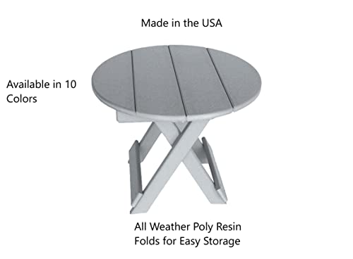 Round Outdoor Patio Side Table - Poly Folding Side Table - 22" Diameter Side Table for Your Adirondack Chairs (Weatherwood)