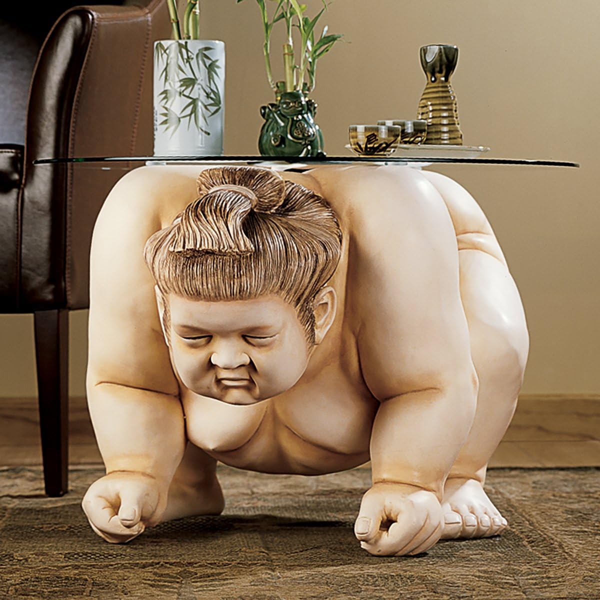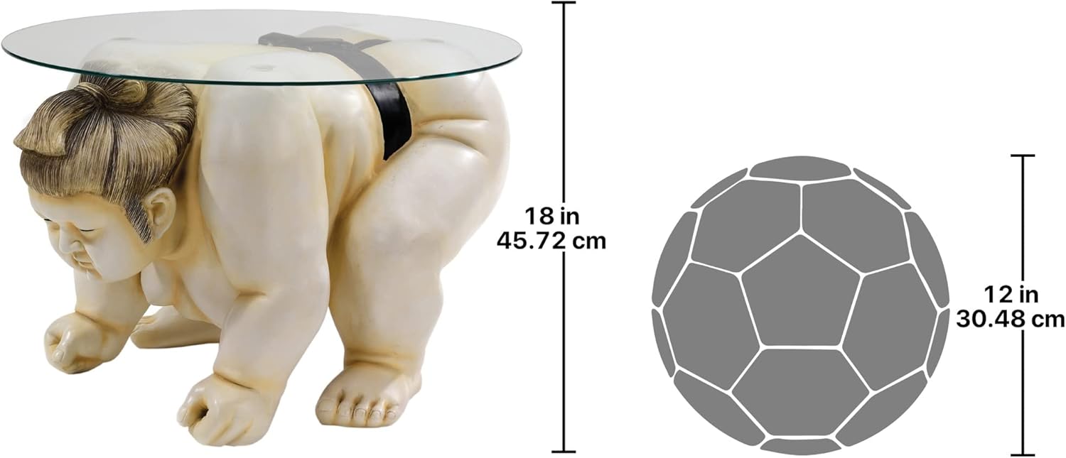 Design Toscano DB378001 Basho The Sumo Wrestler Sculptural Glass-Topped Table, 27 Inch, full color