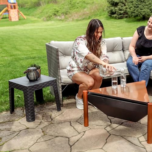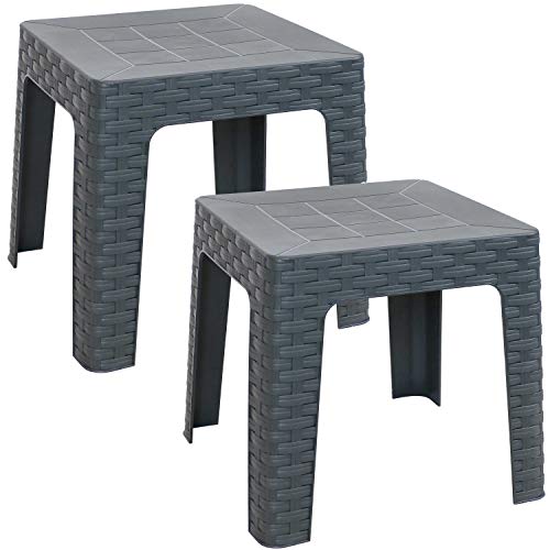 Sunnydaze 18-Inch Square Outdoor Plastic Side Table - Set of 2 Tables - Brown