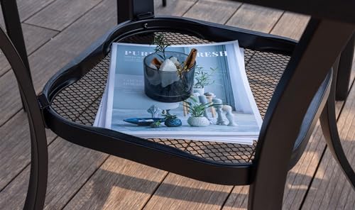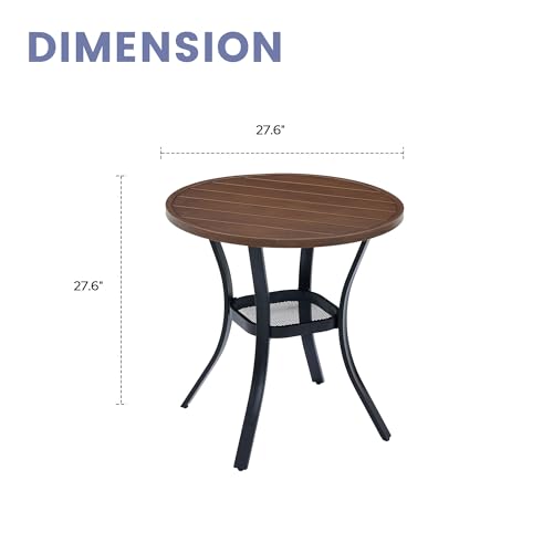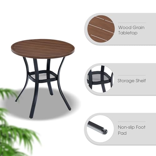 VICLLAX Small Patio Dining Table, Φ28” Outdoor Round Table Metal Slatted Tabletop with Storage Shelf for Deck Lawn Garden Backyard, No Umbrella Hole, Black Tabletop