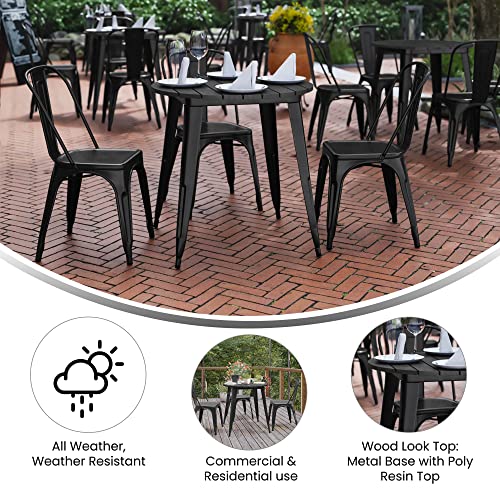 Flash Furniture Declan Commercial Outdoor Dining Table, All Weather Poly Resin Top with Steel Base, 30" Round, Black/Black
