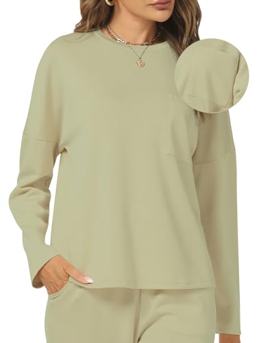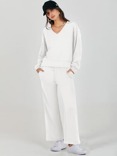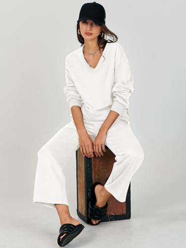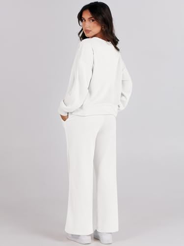 ANRABESS Women's Two Piece Outfits Matching Sets Long Sleeve Crop Pullover Top and Wide Leg Pants Tracksuit Lounge Set