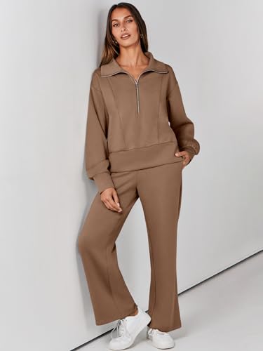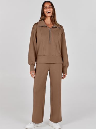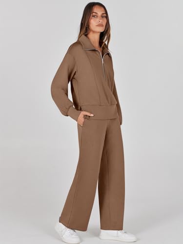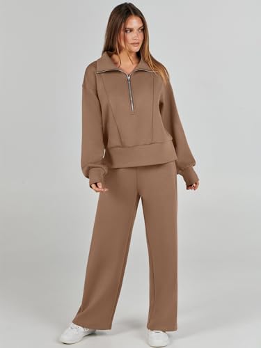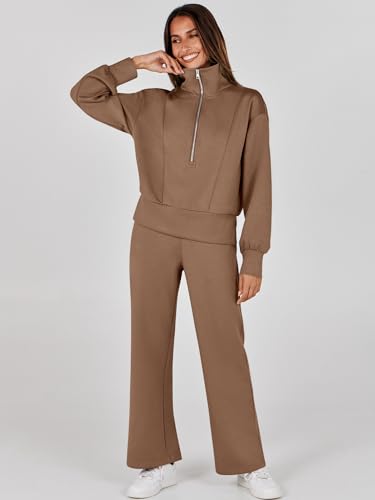 ANRABESS Womens Two Piece Outfits 2024 Fall Sweatsuit Set Half Zip Cropped Sweatshirt Wide Leg Sweatpant Lounge Set