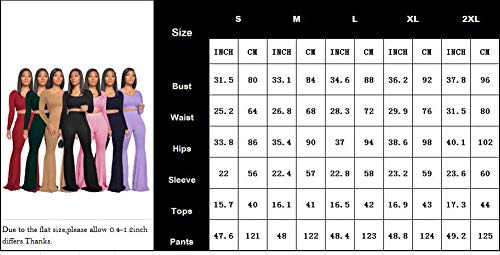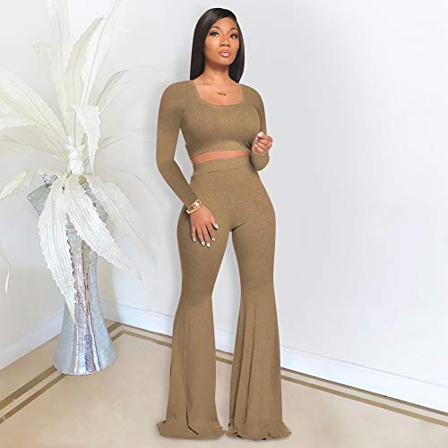 MENCCINO Two Piece Outfits for Women Sexy Crop Top + Flared Long Pants Sweat Suits Ribbed Fitted Tracksuits Yoga Set
