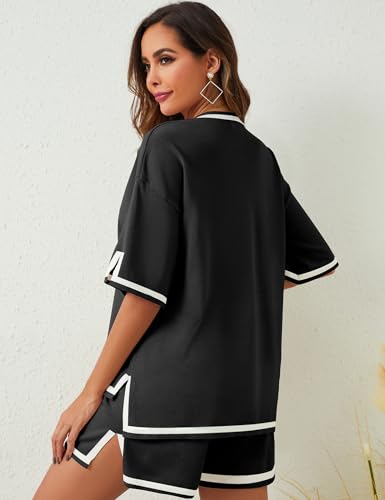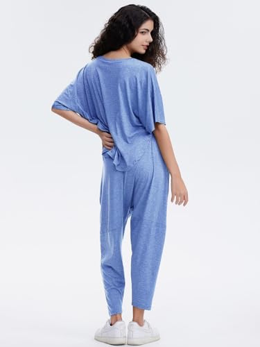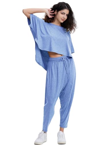 EXLURA Women's Summer 2 Piece Outfits Short Sleeve Crop Top and Jogger Pants Loose Pajama Lounge Matching Sets Tracksuit 2024