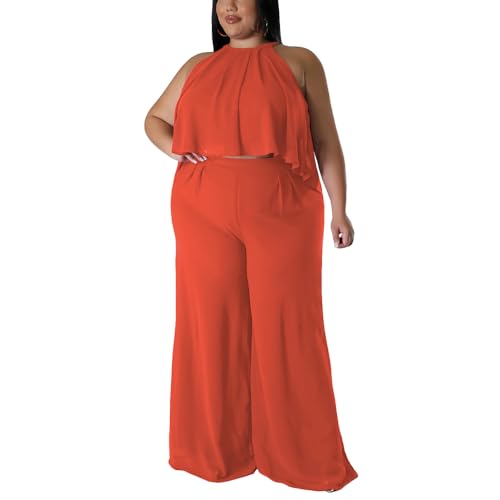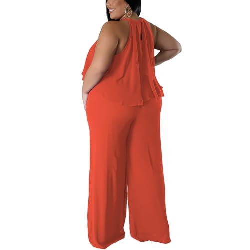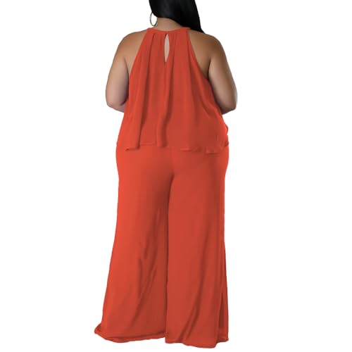 YeGine Women's Plus Size 2 Piece Outfits Summer Casual Sexy Sleeveless Top Lounge Wide Leg Long Pants Set