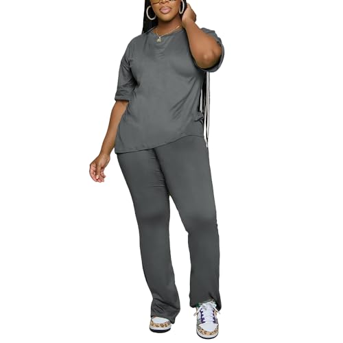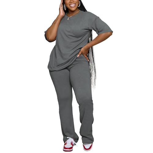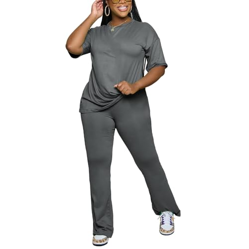 PINSV Women 2 Piece Outfits Short Sleeve Top and Flare Pants Lounge Sets Tracksuit
