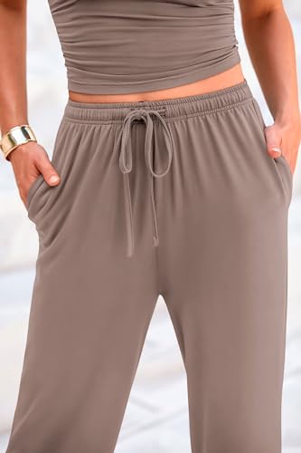 PRETTYGARDEN Women's 2 Piece Outfits Summer Tracksuit Lounge Sets Short Sleeve Crop Tops T Shirts High Waisted Wide Leg Pants