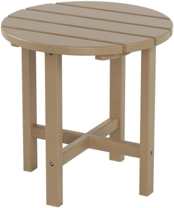 Round End Patio Side Table Made from Durable Plastic/Resin | Water Weather Rust & UV Resistant Size: 18'' H X 18'' W X 18'' L | Pretty Brown Outdoor Adirondack Furniture with 4 Legs & X-Style Frame