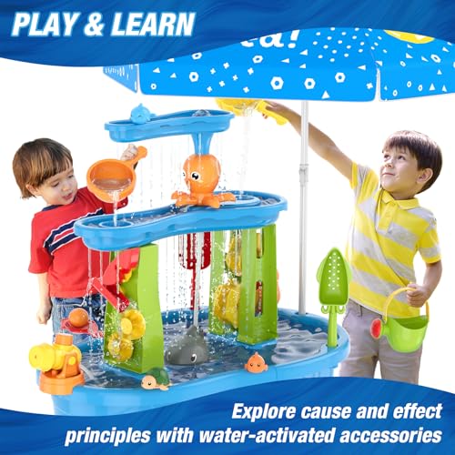 Auto Water Table for Toddlers 1-3 3-5 with Water Pumb, 3-Tier Kids Sand Water Table, Rain Showers Splash Pond for Outdoor Beach Backyard Summer, Activity Sensory Play Table for Boys Girls