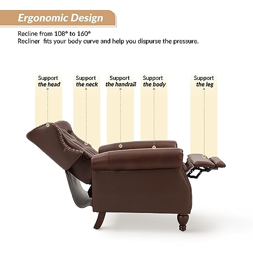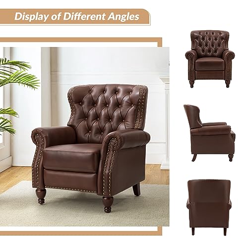HULALA HOME Genuine Leather Recliner Chair with Solid Wood Feet, Modern Adjustable Tufted Push Back Arm Chair w/Rivet Decoration, Home Theater Seating Single Reclining Sofa for Living Room, Burgundy