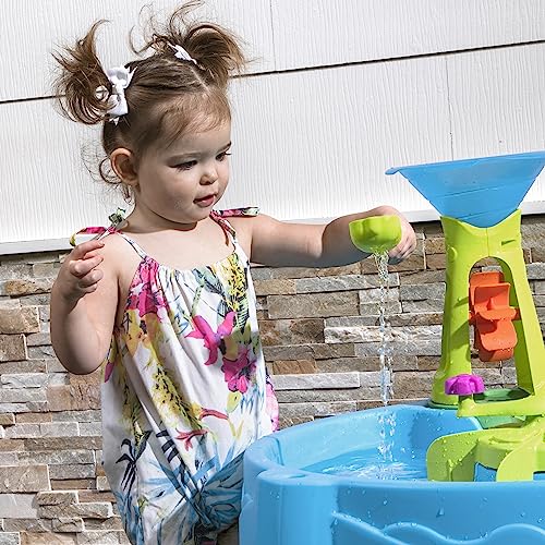 Step2 Summer Showers Splash Tower Water Table for Kids, Outdoor Kids Water Sensory Table, Ages 1.5+ Years Old, 8 Piece Water Toy Accessories, Blue & Green