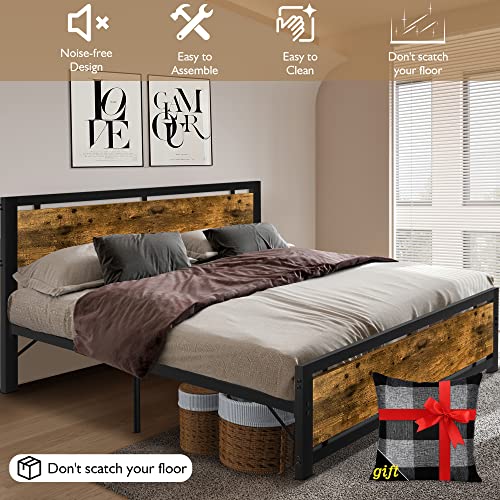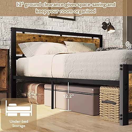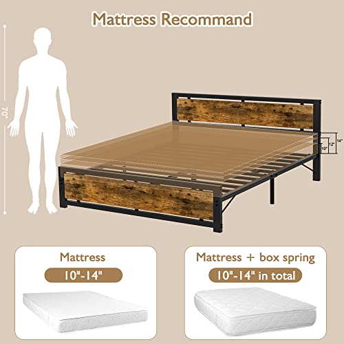 Full Size Bed Frame with Wood Headboard, Platform Bed Frame Full Size with 12 Heavy Duty Metal Steel Slats, No Box Spring Needed, Easy Assembly, Non-Slip Free Noise-Brow