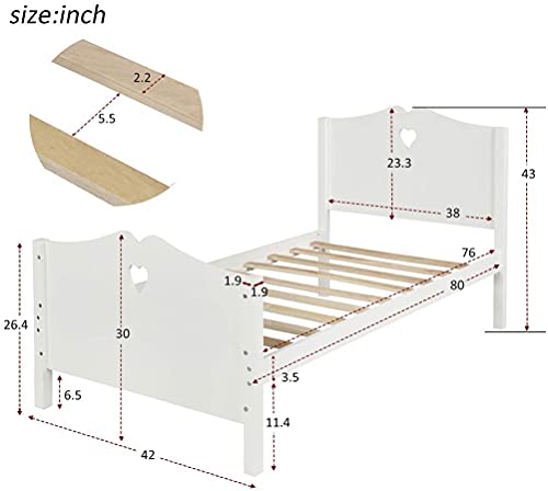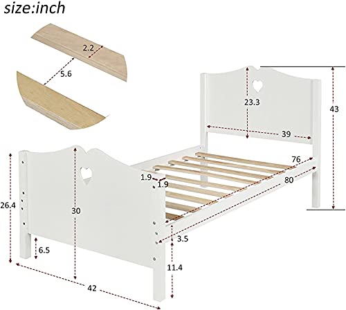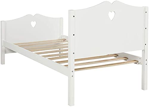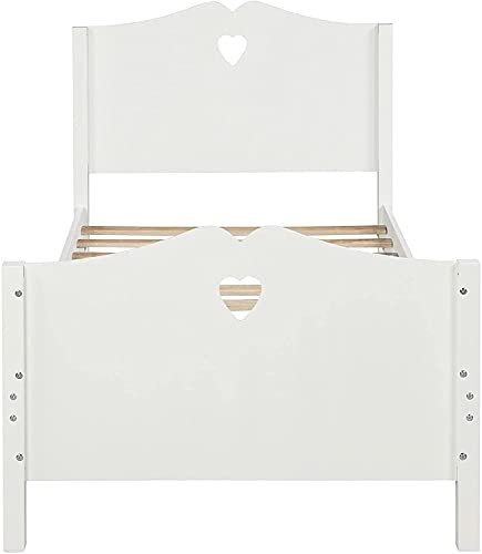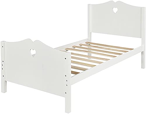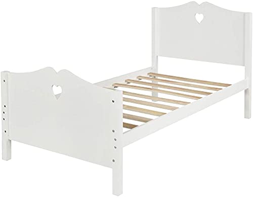 Twin Platform Bed with Wood Slat Support, Sturdy Twin Bed Frame with Headboard and Footboard for Kids (White) (Color : White)