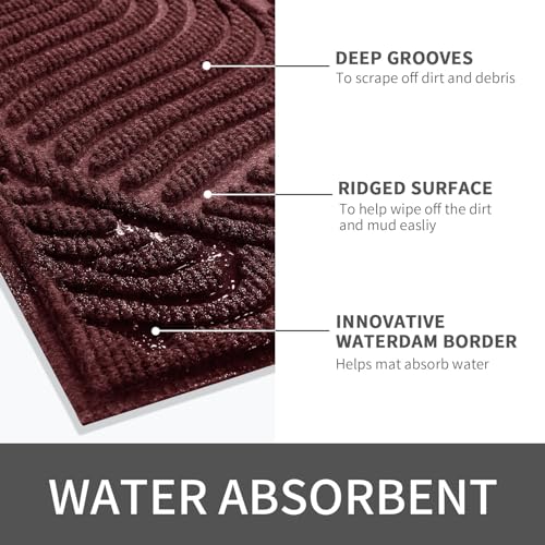 Yimobra Front Door Mat Outdoor Entrance, Ultra Water Absorbent, Heavy Duty Patio Guard Welcome Matt, Non-Slip Rubber Backing, Easy Clean Shoe Scraper, Indoor, Entryway, 59.8x36 Inch, Black