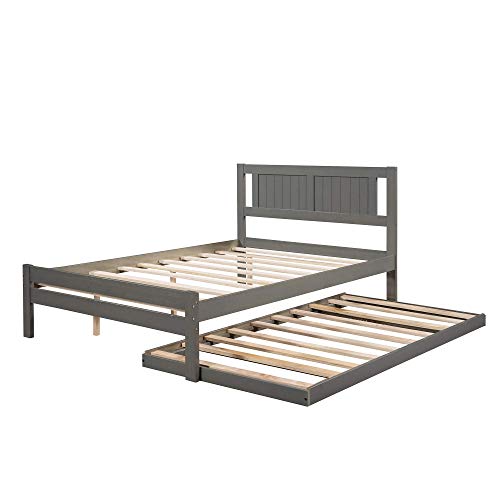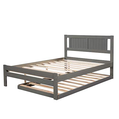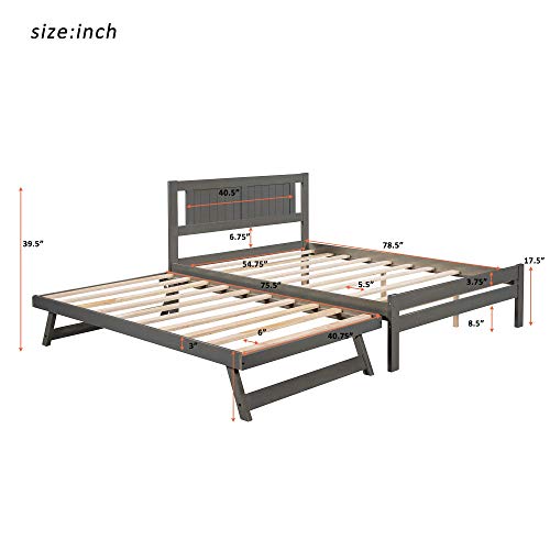 Size Platform Bed with Adjustable Trundle for Bedroom Dorm, Wood Bed Frame with Headboard, Easily Convertible to 2 Beds for Kids Adults (Espresso) (Color : White, Size : Full)