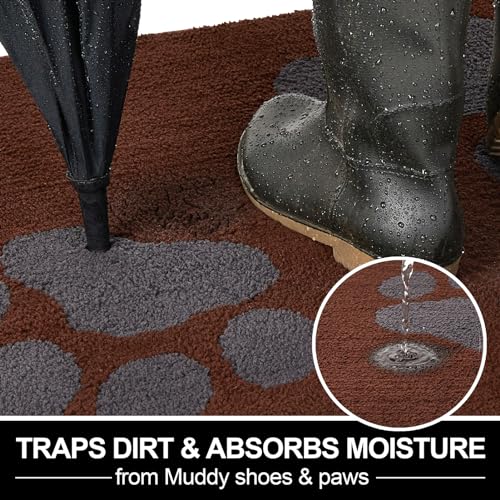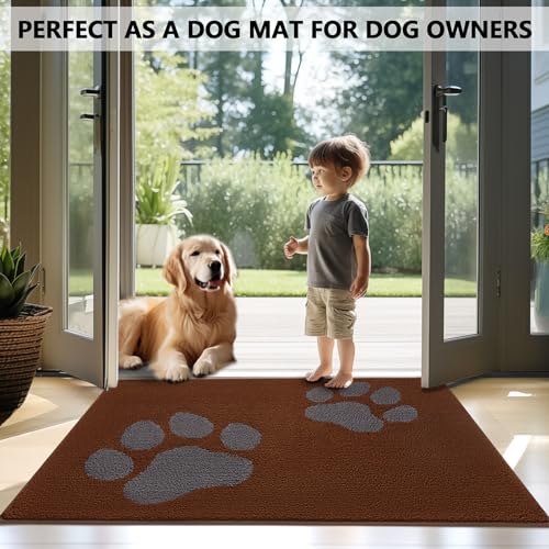 FONEYI Indoor Doormat, Front Back Non Slip Dog Door Mats 36"x59", Low-Profile Washable Entry Rugs, Absorbent Dirt Trapper Doormats for Entryway, Inside Floor Mats for Muddy Wet Shoes & Paws, Dark Grey