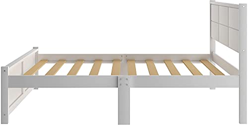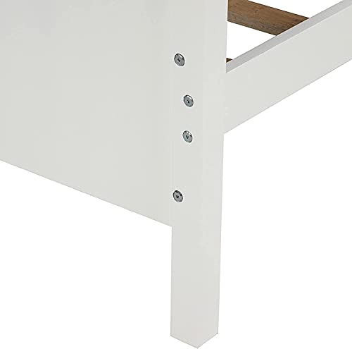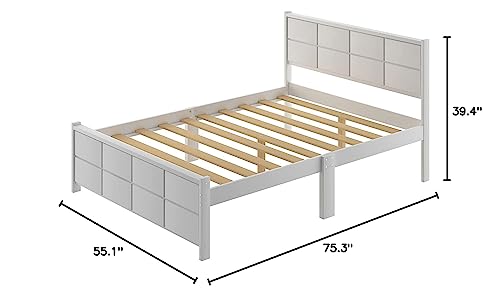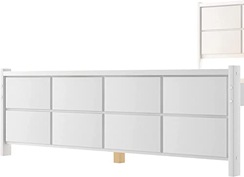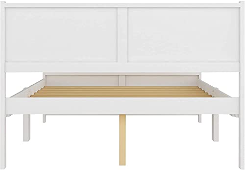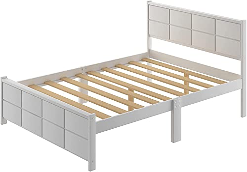 Full Platform Bed, Rockjame Minimalistic Stylish Wood Bed Frame with Rectangular Line Shape Headboard and Footboard, Perfect for Kids, Teens and Adults (Walnut) (Color : White, Size : Queen)