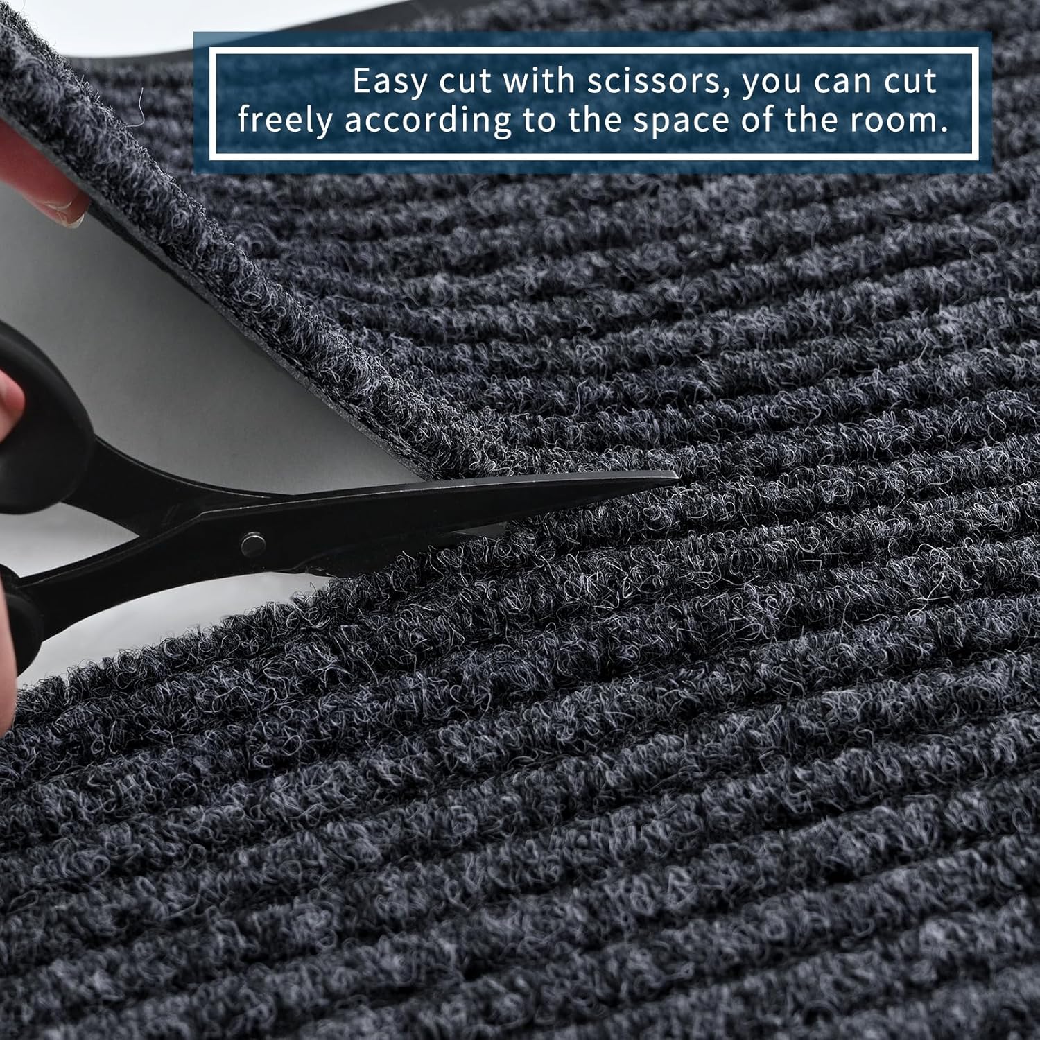 Rubber Door Mat about W3' ×L10' Heavy Duty Large Outdoor Indoor Mat Durable Entrance Doormat Waterproof Rubber Back Rugs for Home Entryway Patio Porch Office Business Areas (Grey)