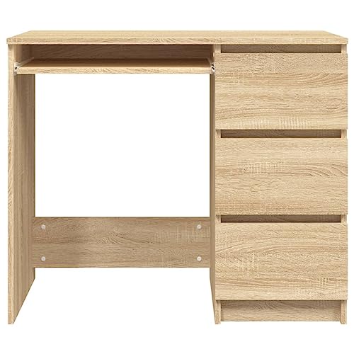 vidaXL Compact Desk with Built-in Storage Drawers– Sonoma Oak Finish Engineered Wood – Scandinavian Style - Perfect for Home Office or Study Room (35.4"x17.7"x29.9")