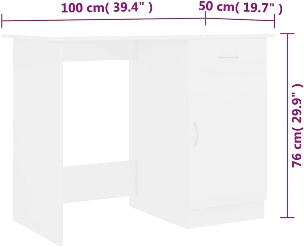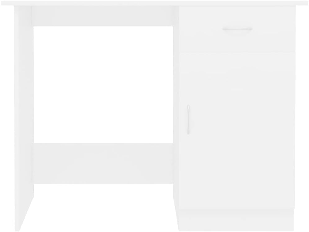 vidaXL Modern Desk in White | Compact 39.4"x19.7"x29.9" | Integrated Drawer and Door Storage | Durable Engineered Wood | Ideal for Office, Study Room or Small Spaces
