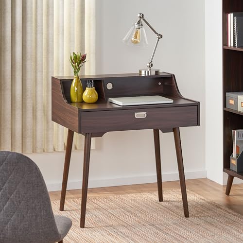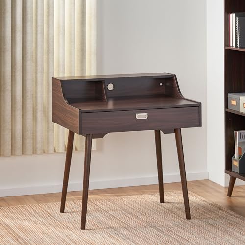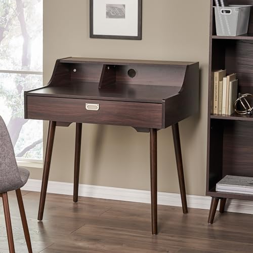 Mid-Century Modern Study Desk - Chic and Functional Workspace Furniture - Perfect for Home Office, Bedroom, or Study Area - Stylish and Compact Design with Storage Capacity (Wenge)