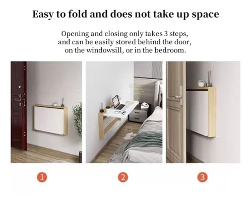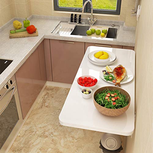Wall Mounted Folding Computer Desk Kitchen Table,Folding Down Dining Table,Wooden Foldable Drop Leaf Table,Compact Learning Table Study Desk,Workbench Portable,White,Save Space (50X20cm/20x8