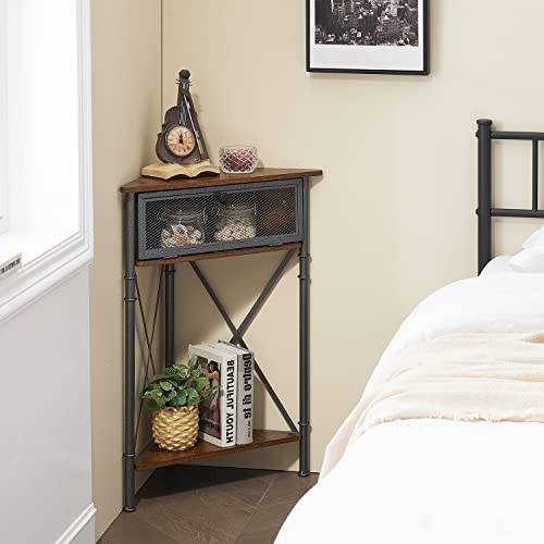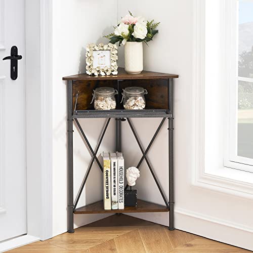VECELO Corner Table/Cabinet with Flip Door and Storage Shelves, Free-standing Organizer for Compact Space in Living Room/Study/lobby/Bedroom,Industrial
