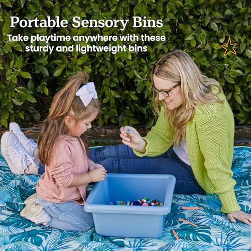 ECR4Kids Square Bin with Lid, Storage Containers, Sand, 2-Pack
