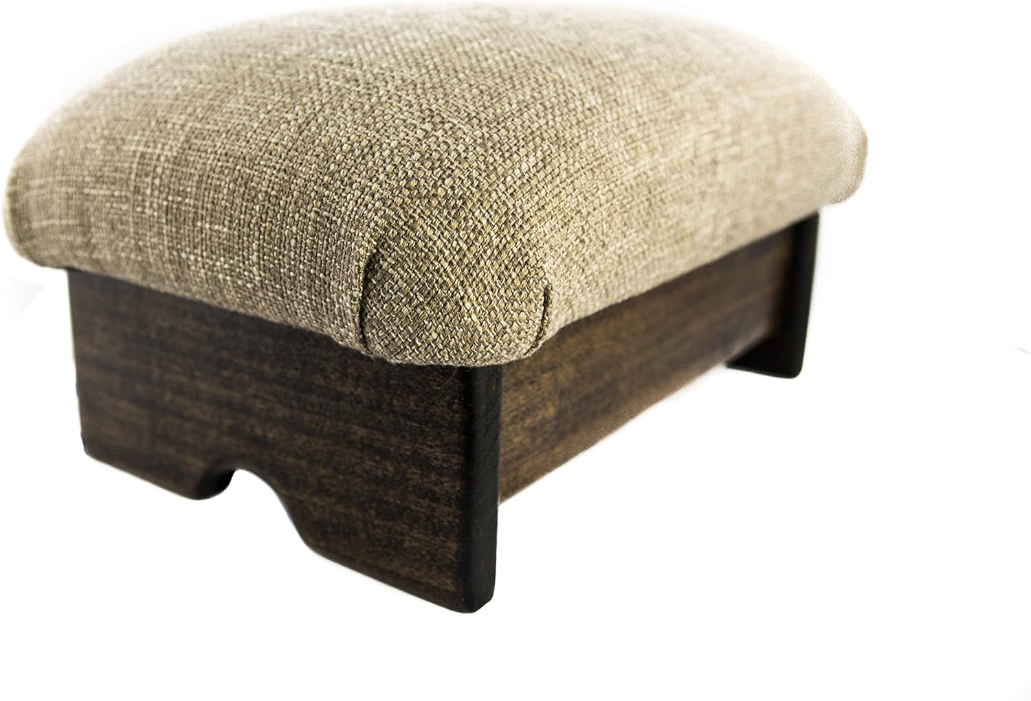 Padded Foot Stool Solid Fabrics 7" Tall, Walnut Stain (Made in The USA) (Desert Sand - Walnut)