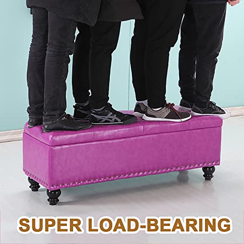 Rectangle Entryway Shoe Bench Multifunctional Sofa Stool for Living Room Bedroom Entryway,Modern Tufted Storage Ottoman,Faux Leather Storage Bench-Purple 60x40x43cm(24x16x17inch)