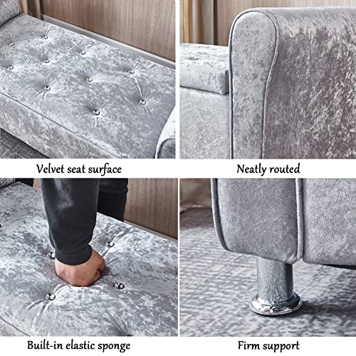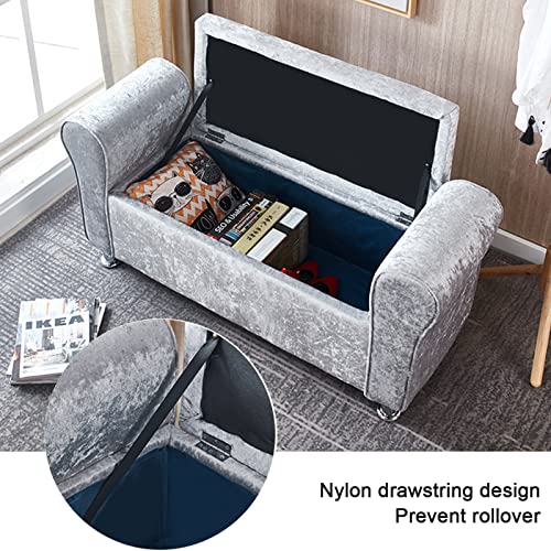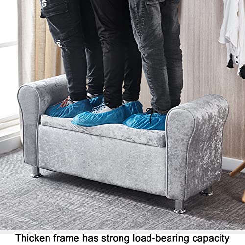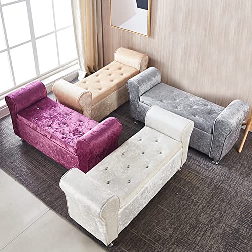 Upholstered Storage Bench with Armrests,Large Capacity Decor Foot Rest Stool for Bedroom Living Room,Velvet Button Tufted Long Storage Ottoman-Purple 100x40x40cm(39x16x16inch)