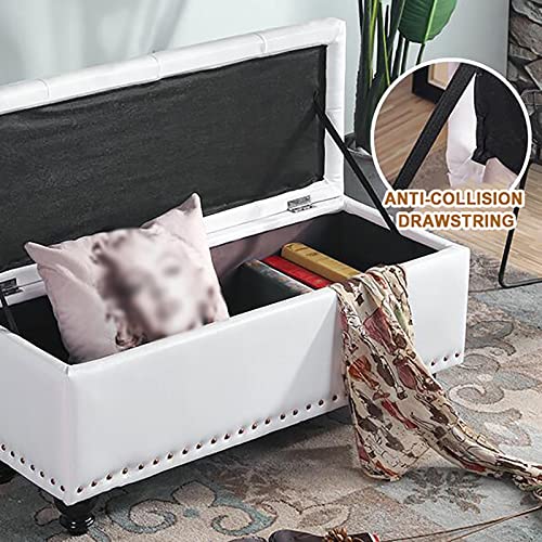 Button Tufted Storage Bench,Rectangular Fabric Storage Ottoman Bench,Large Upholstered Storage Ottoman,Modern Entryway Shoe Bench Footrest for Livingroom-Purple 80x40x40cm