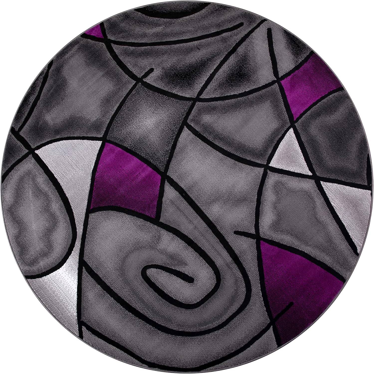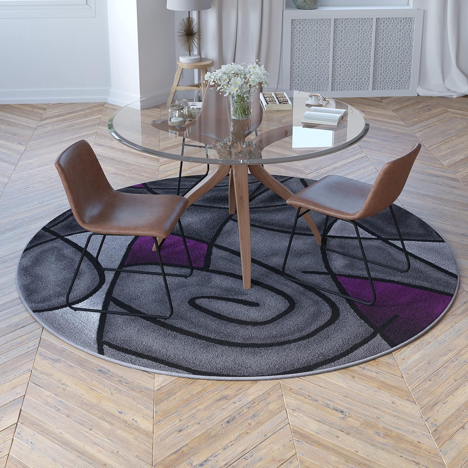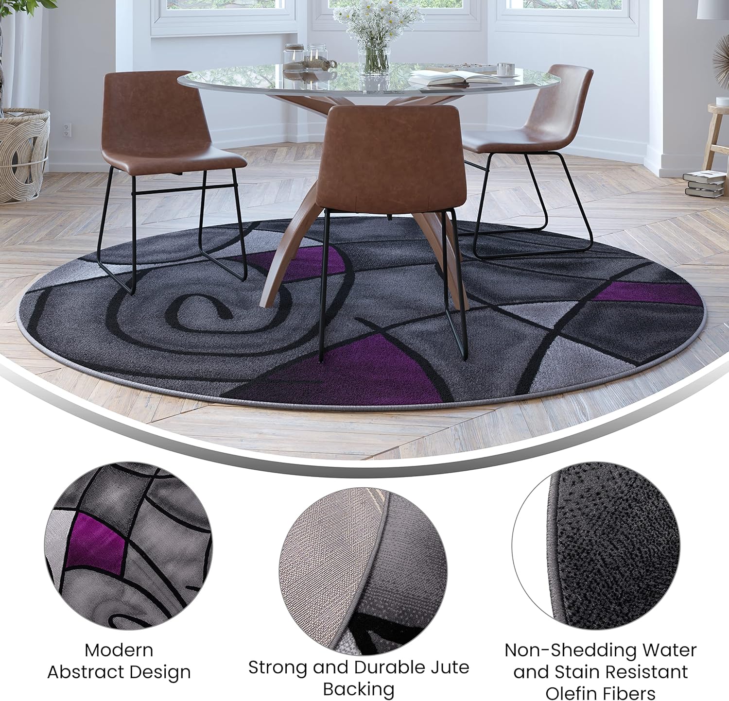 Flash Furniture Jubilee Collection Abstract Area Rug - Colorfast Purple Olefin Rug - 7' x 7' Round Area Rug - Jute Backing - Living Room, Bedroom, & Family Room