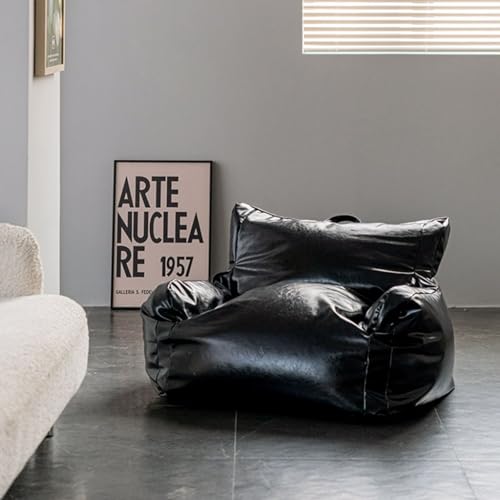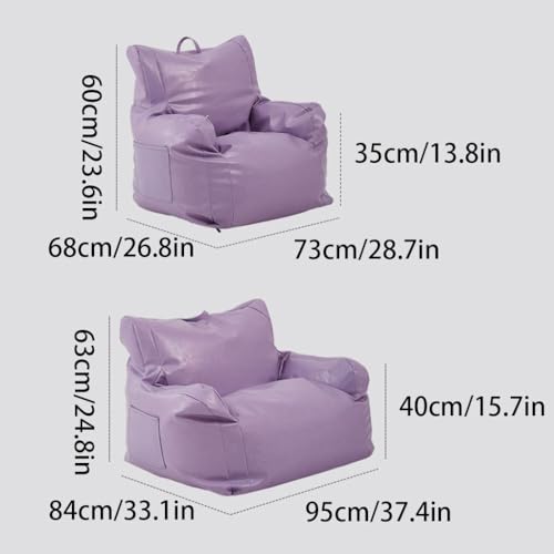 Lazy Sofa Soft Bean Bag Chair Tatami Leather Leisure Lounge Chair Living Room Bedroom Floor Armchair Pouf with Filling, Medium, Purple