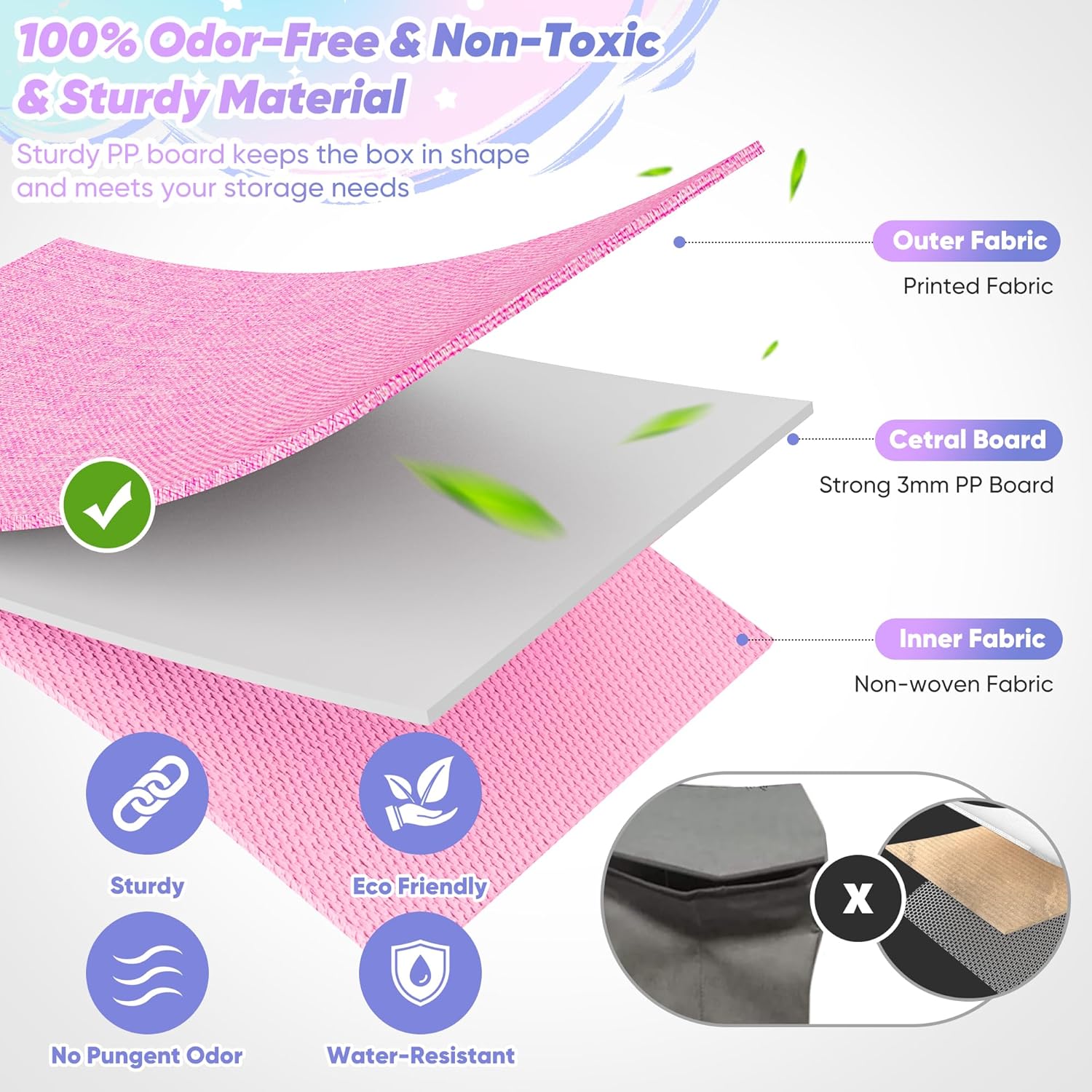 Pink Extra Large Toy Box & Purple Large Toy Chest, Collapsible Sturdy Toy storage bins Baskets Toy Box for Living Room Area for Nursery, Playroom