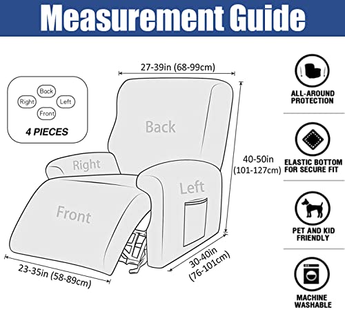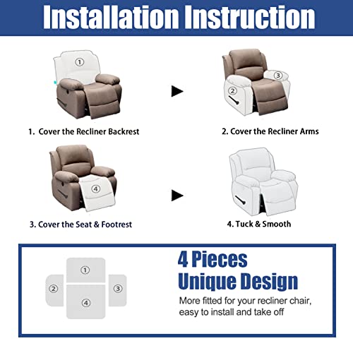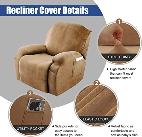 Luxurious Velvet Lazy Boy Recliner Cover, 4 Pieces Recliner Slipcover High Stretch Recliner Couch Cover with Side Pocket Washable Furniture Protector for Living Room -Purple-One Size