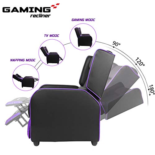 LEMBERI Gaming Recliner Chair for Adults PU Leather Home Theater Seating Video Game Chairs for Living Room Ergonomic Racing Style Single Movie Gamer Lounge Sofa Purple