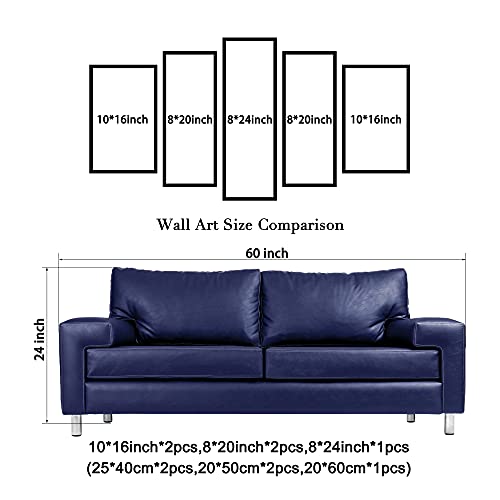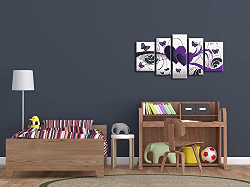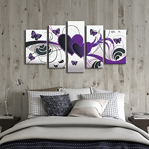 Wieco Art Purple Love Butterfly 5 Panels Modern 100% Hand Painted Stretched and Framed Abstract Romance Artwork Oil Paintings on Canvas Wall Art Ready to Hang for Home Decor 5pcs/set