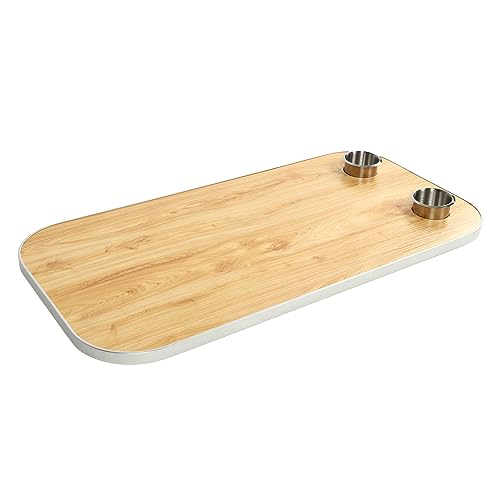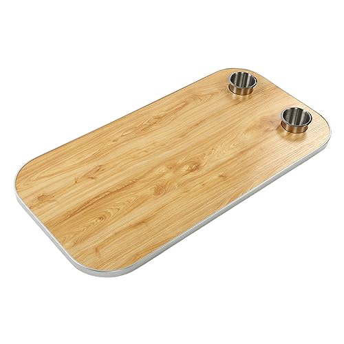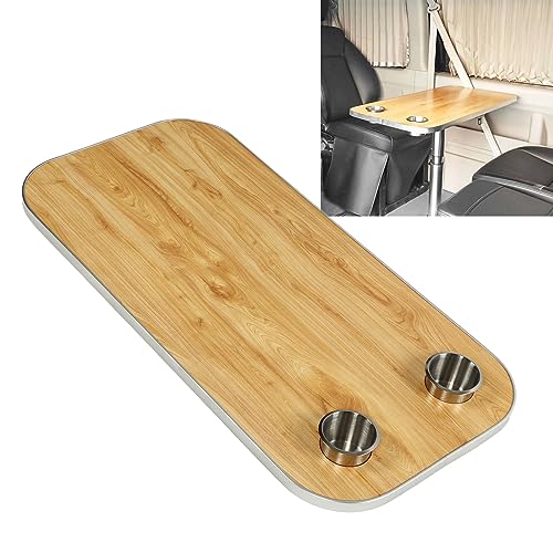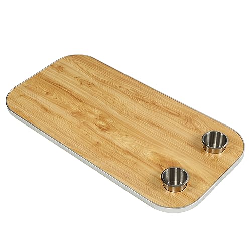 RV Wood Table Top Removable Table, Boat Table Top with 2 Cup Holders Solid Wood Removable Desktop Panel for Caravan RV Marine Boat Yacht Rectangle(Yellow) (Yellow)