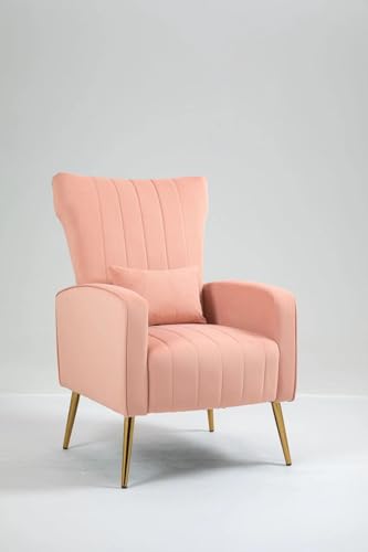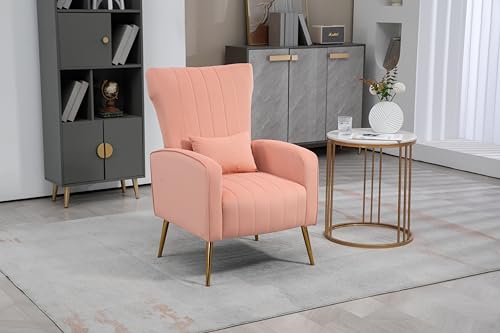 Velvet Accent Chairs for Living Room Modern Wingback Vanity Chairs Upholstered Arm Chairs High Back Accent Chair (Purple)