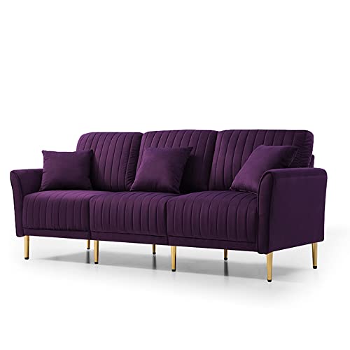 Yoglad Couches for Living Room Modern Velvet Upholstered Square Ottoman Upholstered with Gold Leg Design, Vertical Tufted Small Ottoman for Living Room Purple