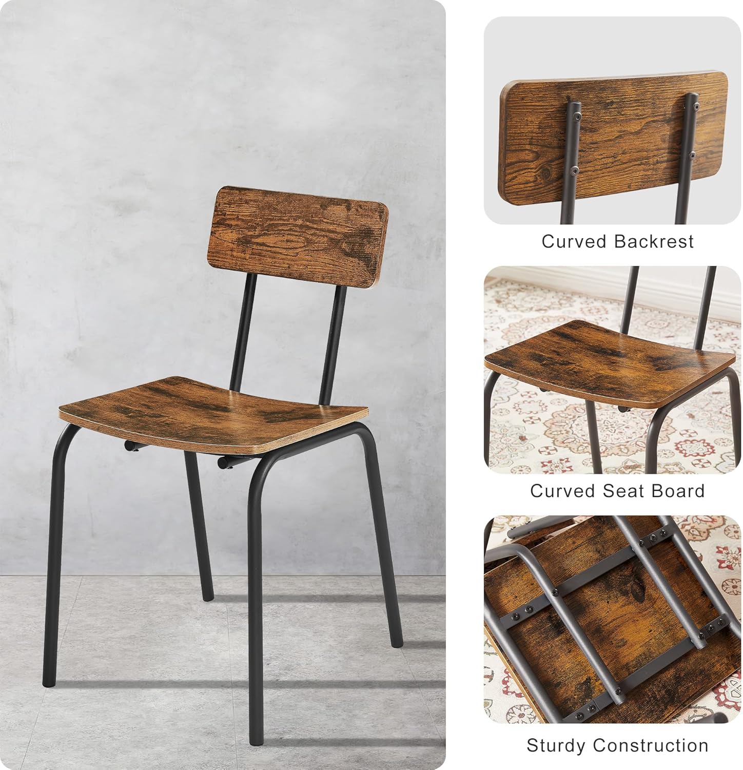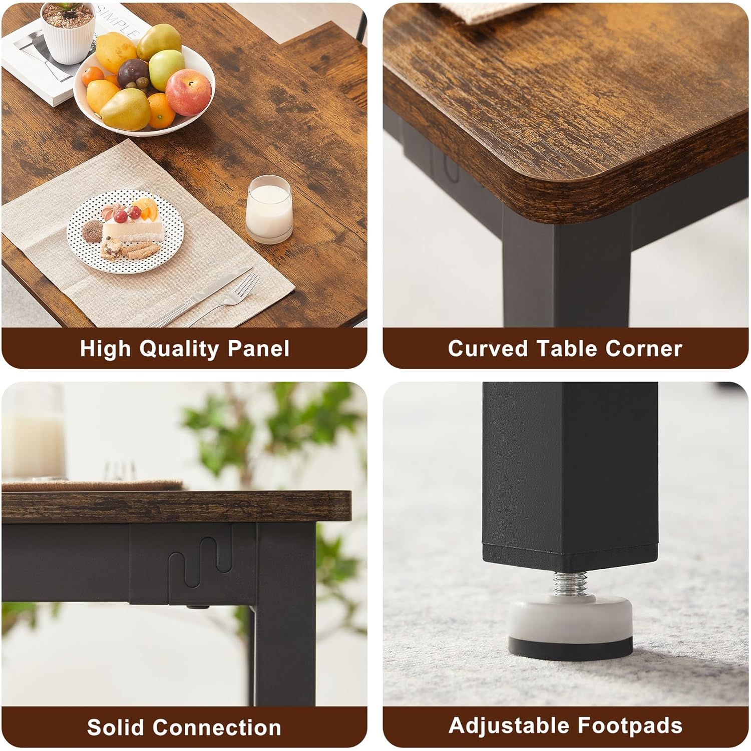 5 Piece Dining Table Set with 4 Chairs,1 Table, Counter Height Bistro Pub Table, Kitchen Table and Stools Set for Kitchen, Dining Room,43.3'' L x 27.6'' W x 30.3'' H (Rustic Brown)