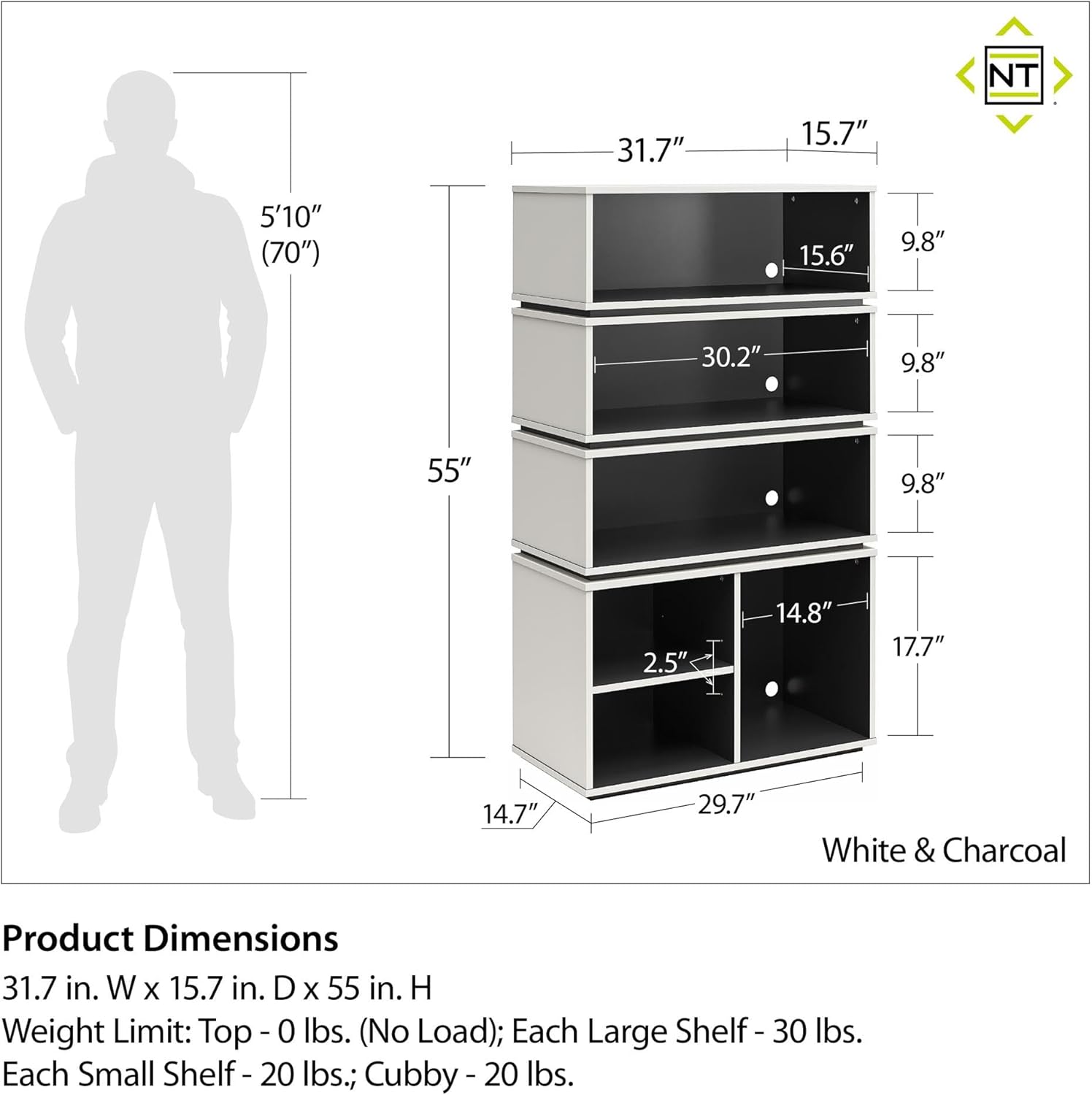 Shadow Gaming & Collectable Display Storage Bookcase, White