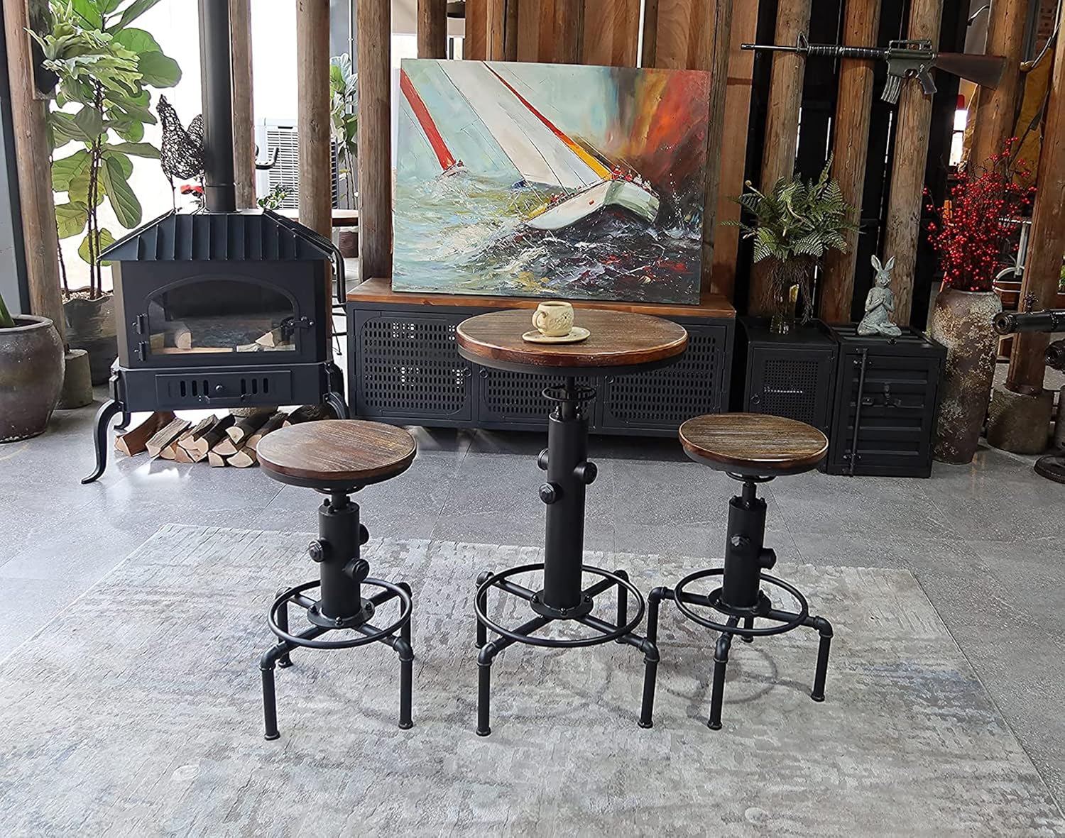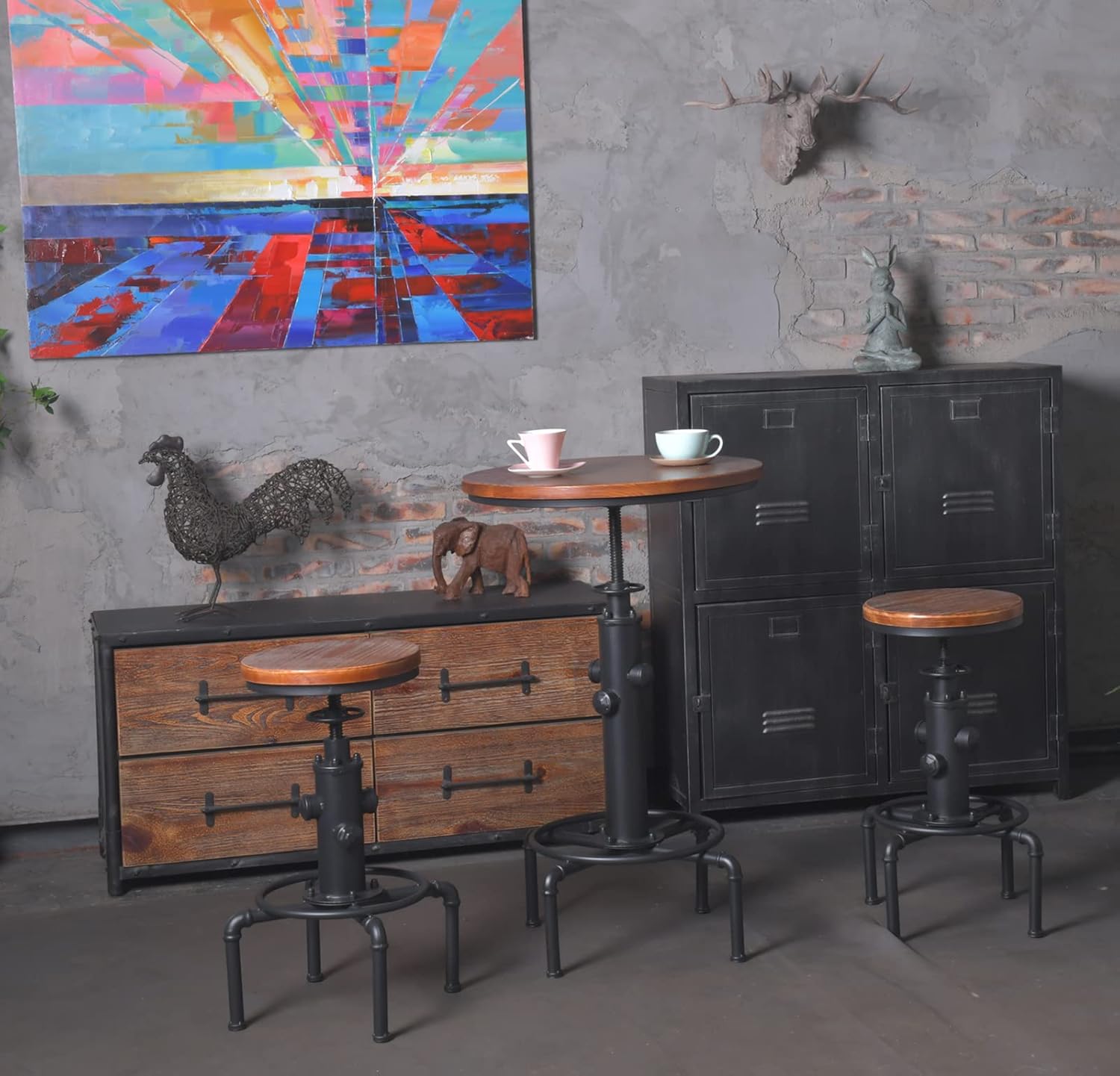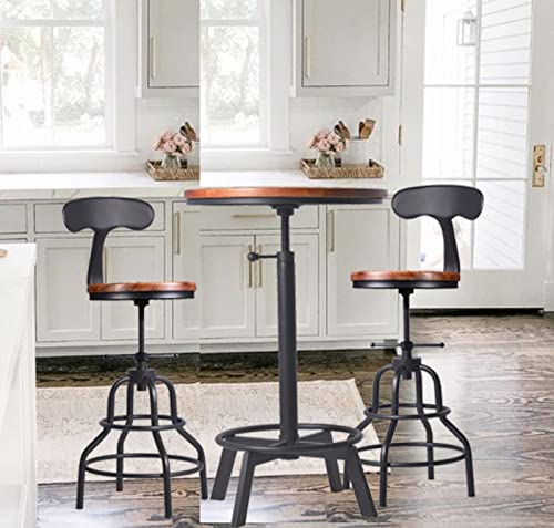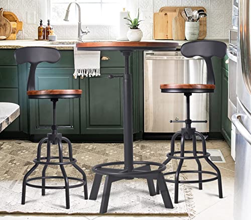 3-Piece Round Table & Chair Sets for Pub Kitchen Dining Living Party Bistro Breakfast, 1 Dining Table (30"-35.4"), 2 Counter Stools (20"-27"), Swivel Adjustable, Mostly Weld, Space-Saving,23.62" Dia